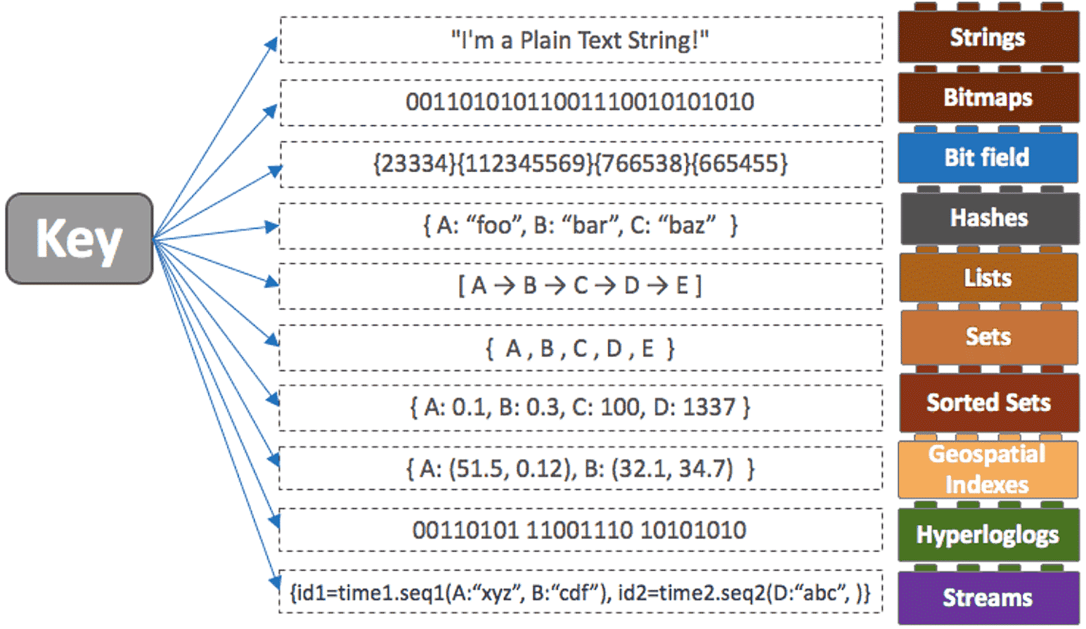 하지만 memchached와 달리 다양한 데이터 구조체를 지원합니다. 이를 컬렉션이라고 부르는데 다음 그림을 보겠습니다.